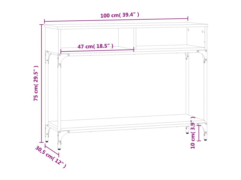 vidaXL Konzolový stolík čierny 100x30,5x75 cm kompozitné drevo