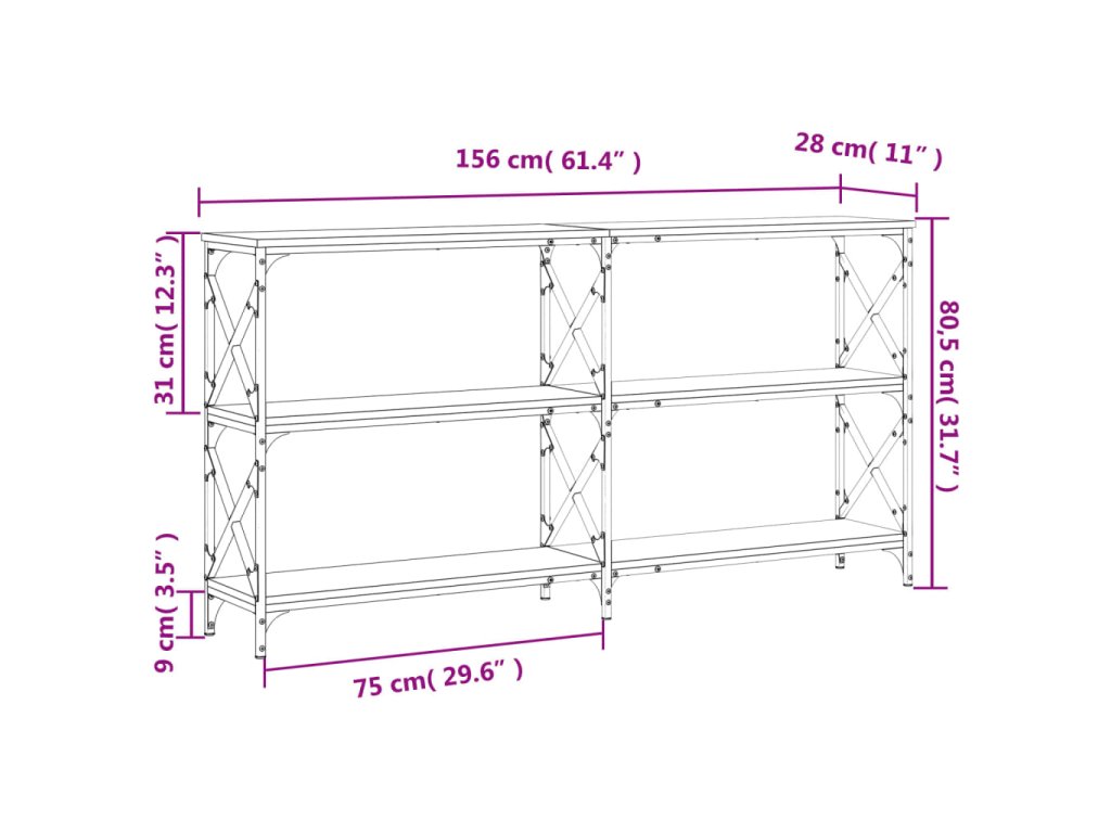 vidaXL Konzolový stolík dymový dub 156x28x80,5 cm kompozitné drevo
