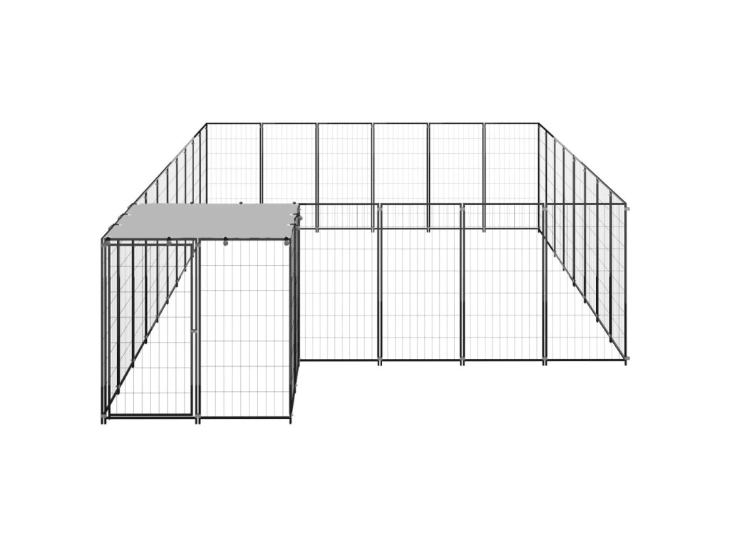 Veľká klietka pre psa poskytuje dostatok priestoru na cvičenie. Stena z oceľového pletiva pomáha predchádzať neočakávaným nehodám a zároveň umožňuje vetranie vnútra. Vďaka robustnej oceľovej konštrukcii je tento výbeh pre domáce zvieratá odolný a vyrobený tak, aby vydržal čo najdlhšie. Dodáva sa s polyetylénovou strechou, ktorá je odolná voči vode a UV žiareniu, čím poskytuje ochranu pred slnkom, dažďom, snehom a inými poveternostnými podmienkami. Dvere majú navyše uzamykateľnú západku, ktorá zaisťuje dodatočnú bezpečnosť a ochranu vašich psov.