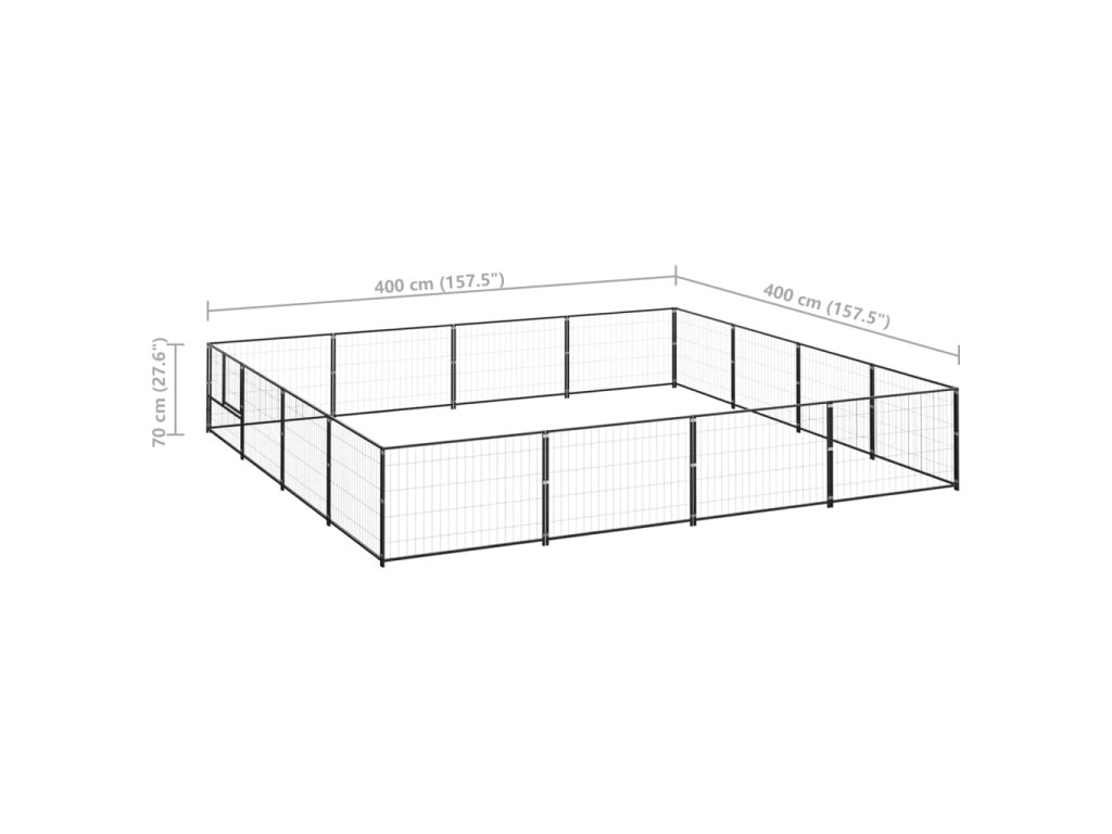vidaXL Koterec pre psy čierny 16 m² oceľ