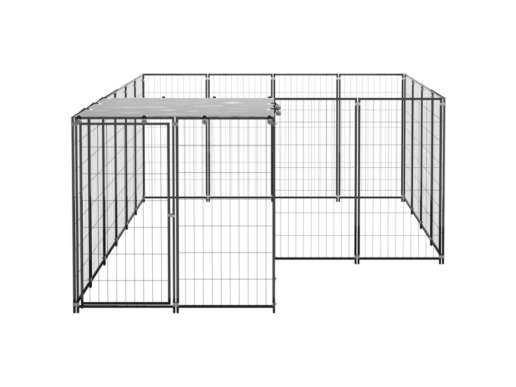 Veľká klietka pre psa poskytuje dostatok priestoru na cvičenie. Stena z oceľového pletiva pomáha predchádzať neočakávaným nehodám a zároveň umožňuje vetranie vnútra. Vďaka robustnej oceľovej konštrukcii je tento výbeh pre domáce zvieratá odolný a vyrobený tak, aby vydržal čo najdlhšie. Dodáva sa s polyetylénovou strechou, ktorá je odolná voči vode a UV žiareniu, čím poskytuje ochranu pred slnkom, dažďom, snehom a inými poveternostnými podmienkami. Dvere majú navyše uzamykateľnú západku, ktorá zaisťuje dodatočnú bezpečnosť a ochranu vašich psov.