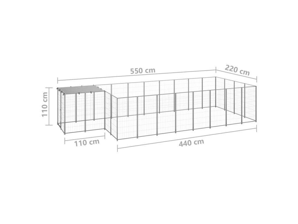 vidaXL Koterec pre psy strieborný 10,89 m² oceľ
