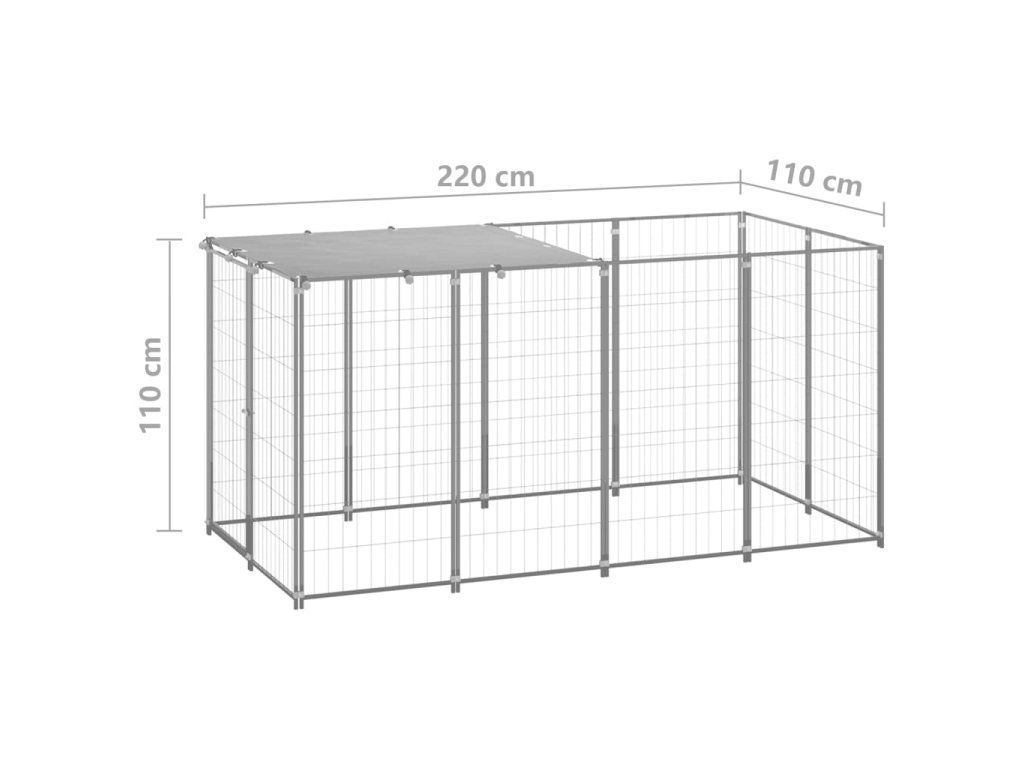 vidaXL Koterec pre psy strieborný 2,42 m² oceľ