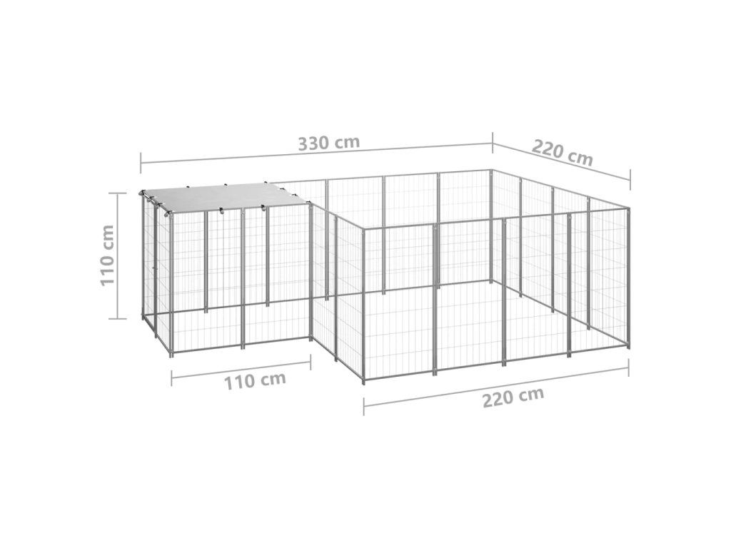 vidaXL Koterec pre psy strieborný 6,05 m² oceľ