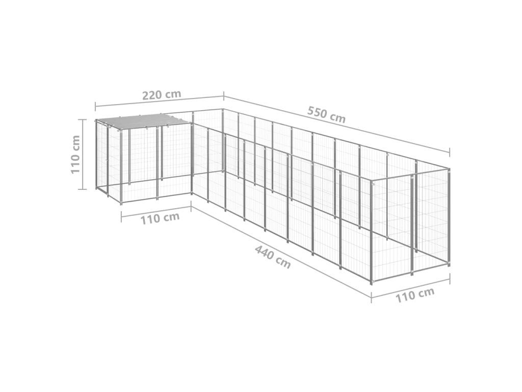 vidaXL Koterec pre psy strieborný 7,26 m² oceľ