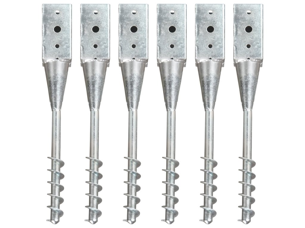 vidaXL Kotviace hroty 6 ks, strieborné 10x10x57 cm, pozinkovaná oceľ