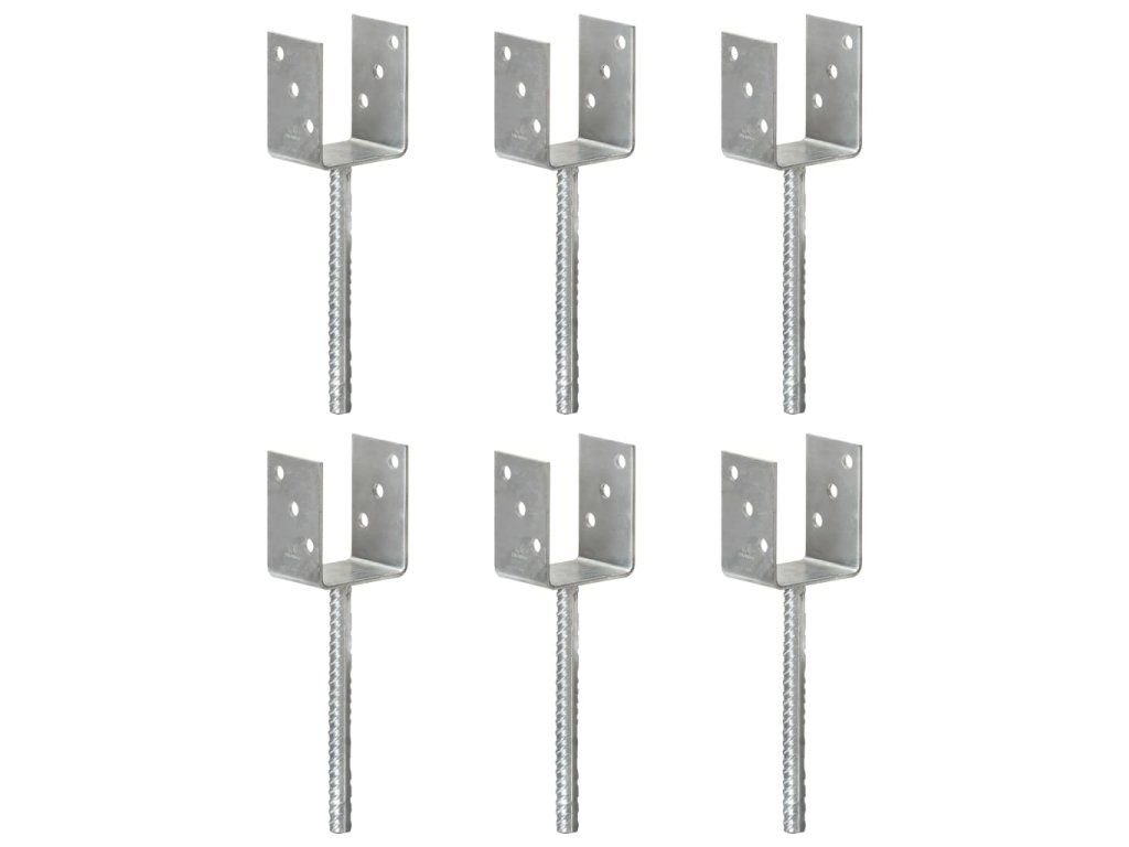 vidaXL Kotviace pätky 6 ks, strieborné 8x6x30 cm, pozinkovaná oceľ