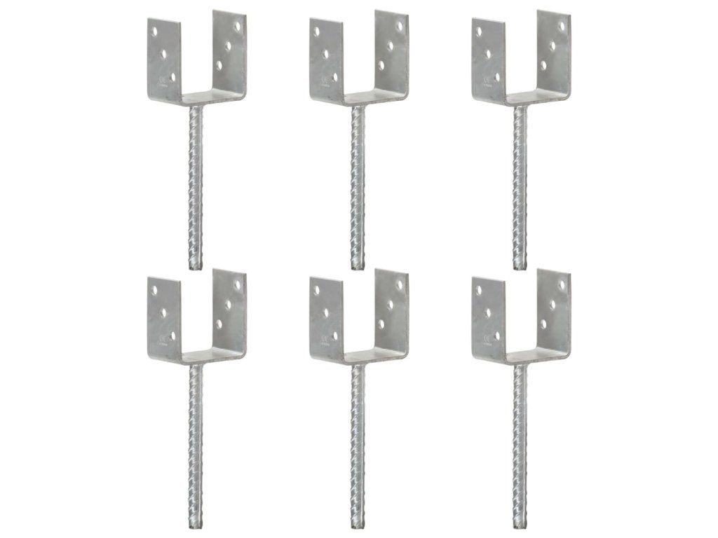 vidaXL Kotviace pätky 6 ks, strieborné 9x6x30 cm, pozinkovaná oceľ