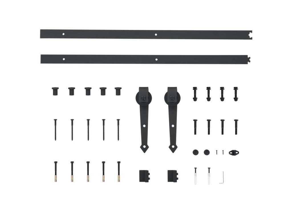 V balení sa nachádzajú 2 posuvné koľajnice, 2 valčeky, 2 zarážky na dvere, 1 podlahová lišta, 2 bloky proti vykoľajeniu, 5 upevňovacích svoriek a ďalšie potrebné náradie. Poznámka: Dvere nie sú súčasťou balenia.