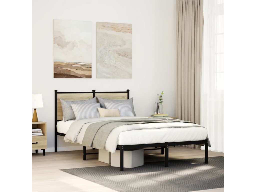 vidaXL Kovový posteľný rám bez matraca, dub sonoma 120x200 cm