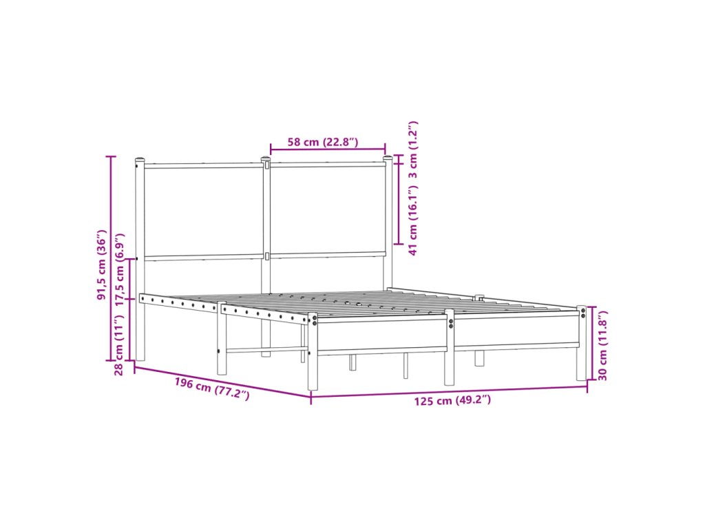 - Kovové lamely a nohy: Kovový rám postele je doplnený kovovými lamelami a stredovými nohami, ktoré poskytnú vášmu matracu potrebnú oporu a priedušnosť.