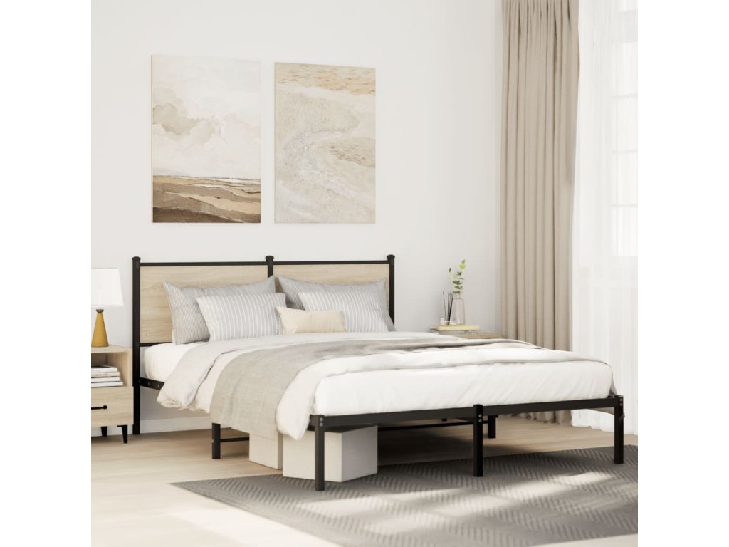 vidaXL Kovový posteľný rám bez matraca dub sonoma 150x200 cm