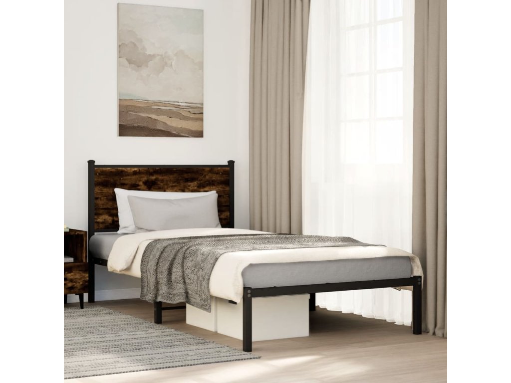 vidaXL Kovový posteľný rám bez matraca dymový dub 107x203 cm