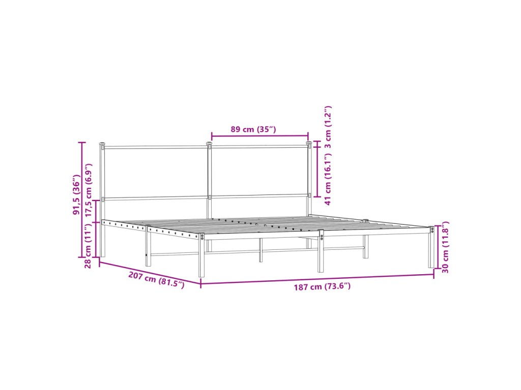 - Kovové lamely a nohy: Kovový rám postele je doplnený kovovými lamelami a stredovými nohami, ktoré poskytnú vášmu matracu potrebnú oporu a priedušnosť.