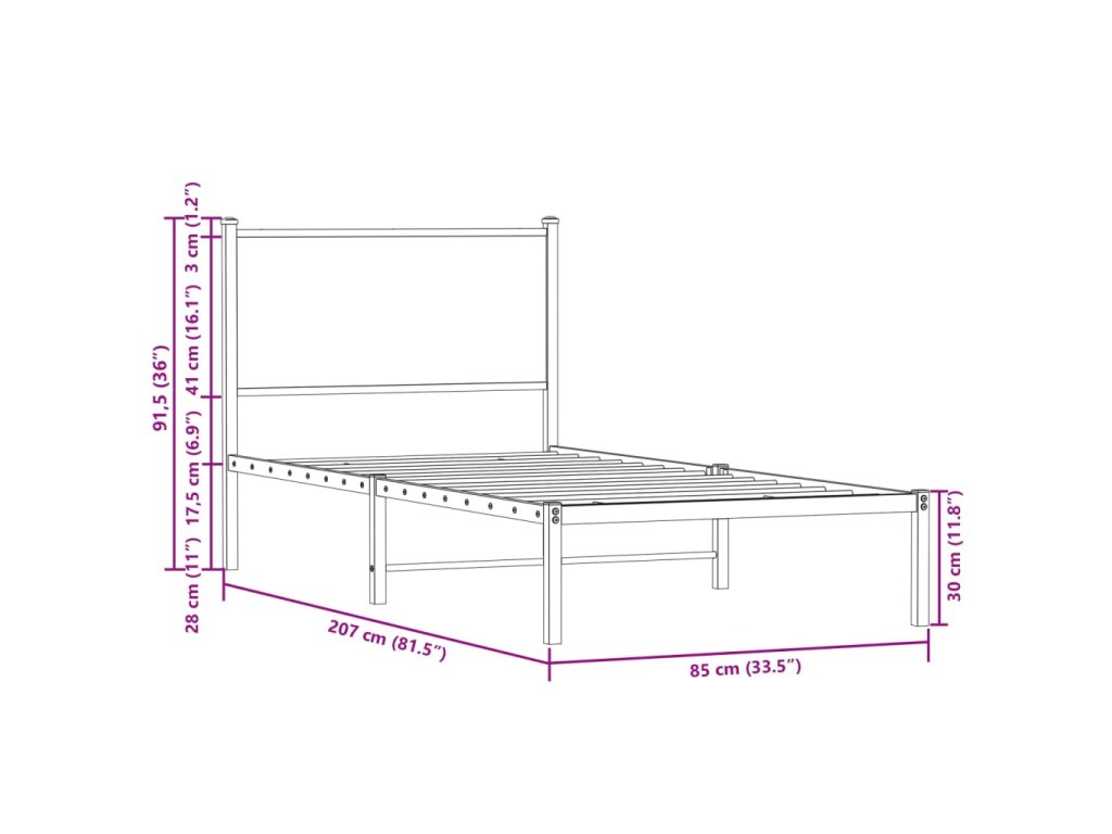 - Kovové lamely a nohy: Kovový rám postele je doplnený kovovými lamelami a stredovými nohami, ktoré poskytnú vášmu matracu potrebnú oporu a priedušnosť.