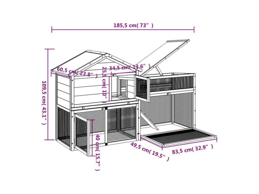 vidaXL Králikáreň hnedá 185,5x60,5x109,5 cm masívna borovica