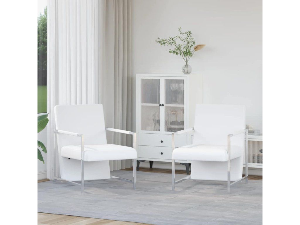 vidaXL Kreslá 2 ks s chrómovým rámom, biele, umelá koža
