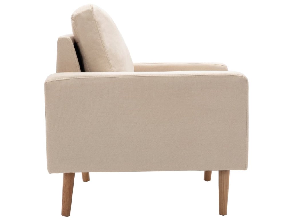 Pohovka má na dotyk mäkký látkový poťah a podložky s hustou výplňou, vďaka čomu vám poskytne pohodlné miesto na oddychovanie. Celú konštrukciu podopiera drevený rám, ktorý pohovke zároveň prináša potrebnú stabilitu.