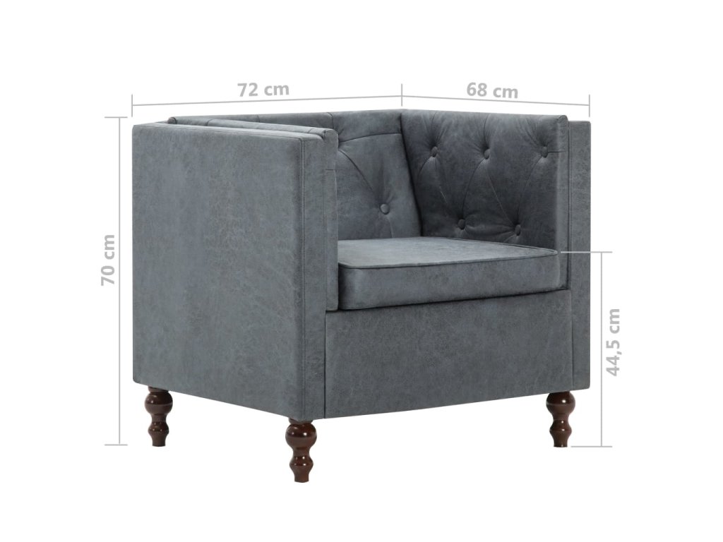 Kreslo chesterfield má pevný drevený rám, ktorý mu dodáva stabilitu a trvácnosť. Kreslo je potiahnuté vysokokvalitnou látkou a vyplnené hustým molitanom, a tak poskytuje optimálne pohodlie pri sedení. Poslúži ako ideálne miesto na sledovanie televízie alebo oddychovanie s knižkou v ruke! Výrobok je potrebné zmontovať.