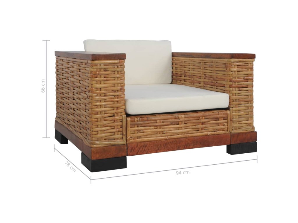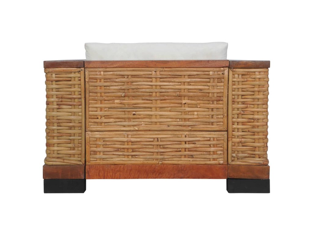 Vďaka kvalitnému pravému ratanu sa kreslo jednoducho čistí, je odolné a vhodné na každodenné použitie. Má pevný drevený rám, ktorý je skutočne odolný a stabilný. Hrubé podsedáky a vankúše sú pohodlné a vďaka odnímateľným návliečkam sú aj umývateľné. Široké opierky zaistia, že sa na pohovke pohodlne sedí.