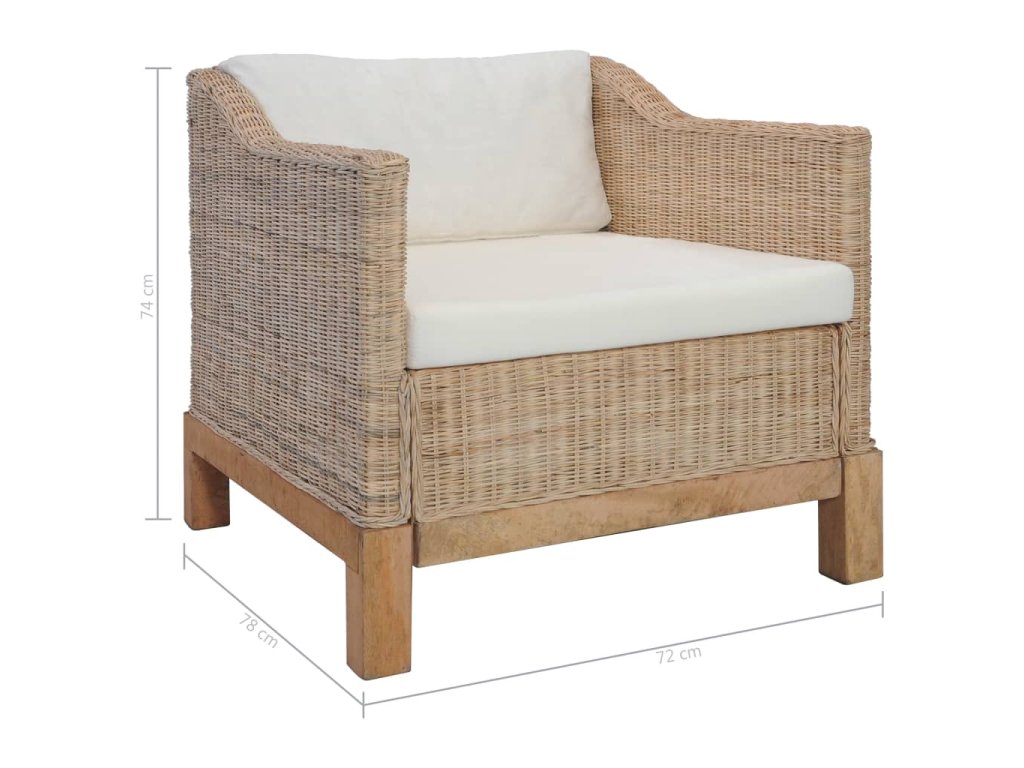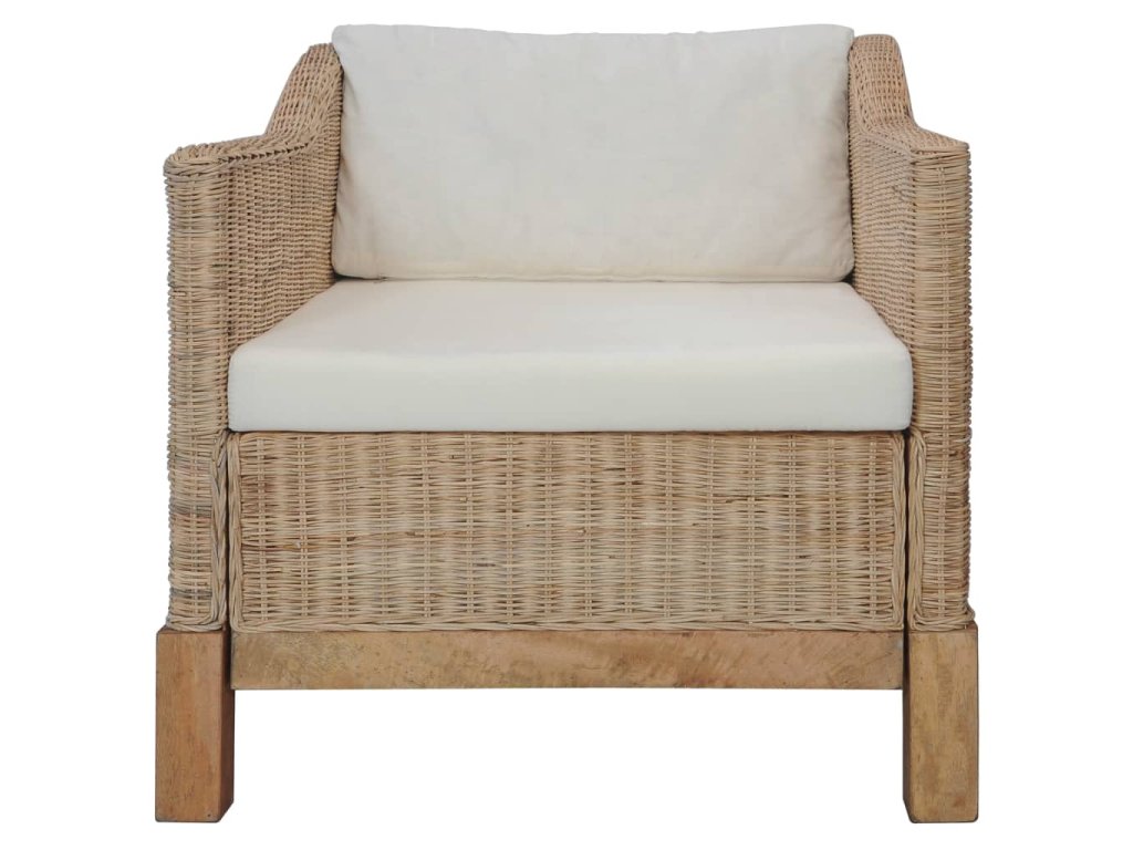 Vďaka pravému ratanovému materiálu sa toto kreslo jednoducho čistí, je odolné a vhodné pre každodenné použitie. Má pevný drevený rám, ktorý je trvácny a stabilný. Hrubé podsedáky a vankúše sú pohodlné a vďaka odnímateľným návliečkam sa dajú aj prať.