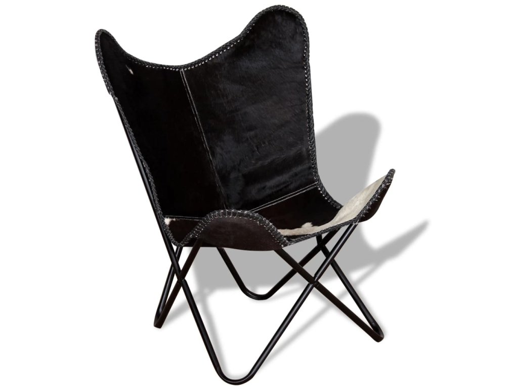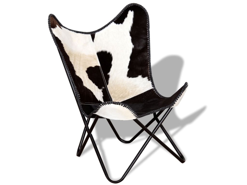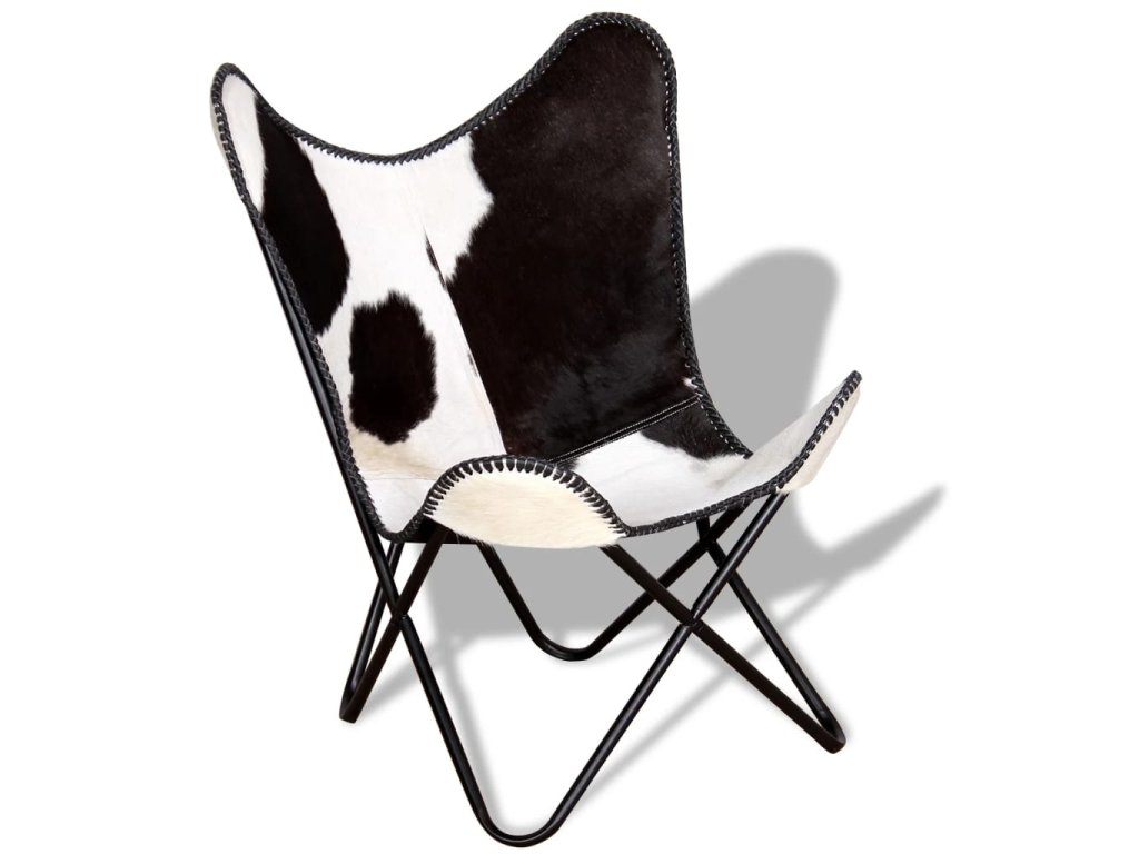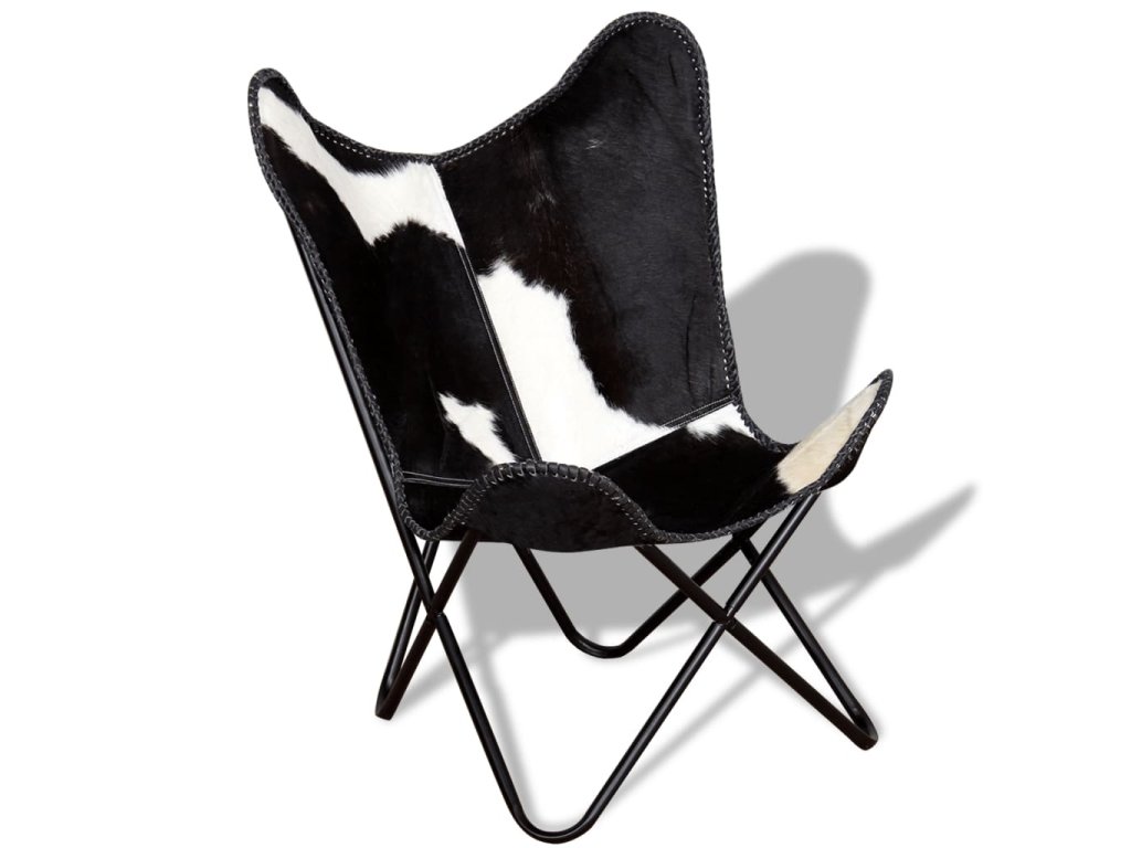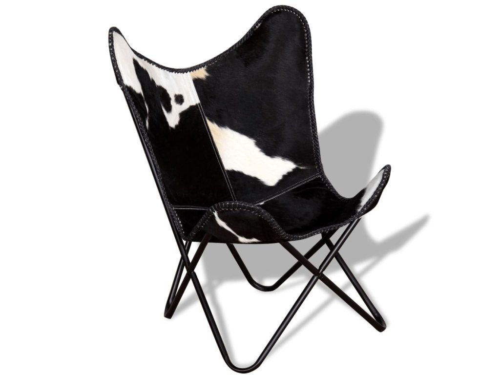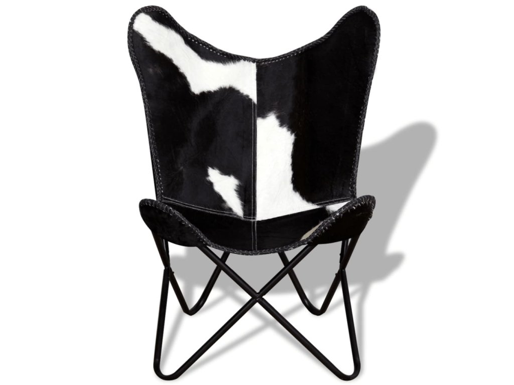 vidaXL Kreslo v tvare motýľa čierno-biele pravá kravská koža