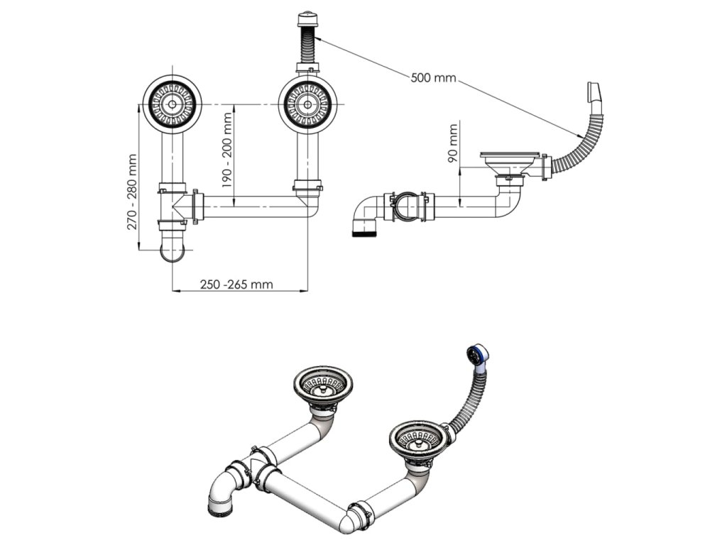 - Rozmery malej vaničky: 162 x 305 x 100 mm (Š x H x V)