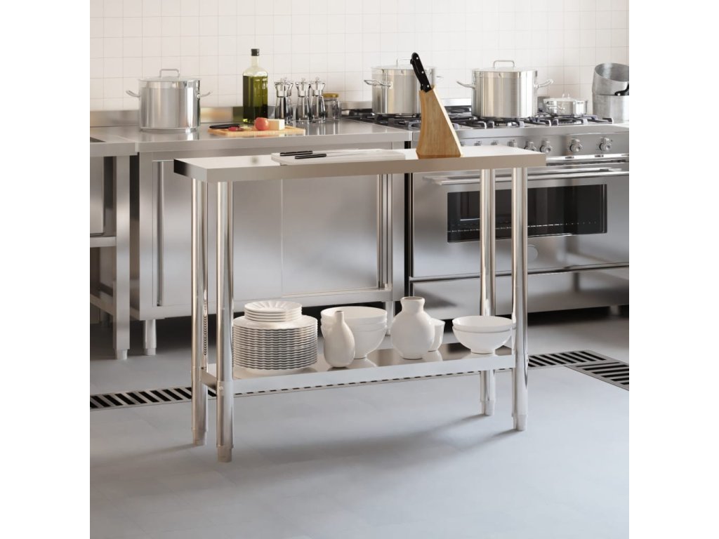 - Priestranné pracovisko: Prípravný stôl z nehrdzavejúcej ocele je navrhnutý so spodnou policou pre prispôsobený priestor, ktorý poskytuje dostatok úložného priestoru pre vašu mikrovlnnú rúru, kuchynské náčinie alebo iné nástroje, ktoré budete potrebovať.
