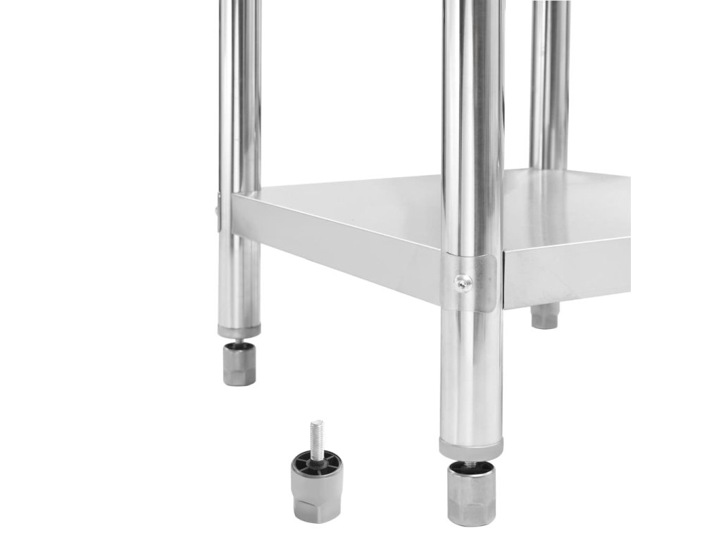 Gastronomický stôl je vyrobený z vysokokvalitnej nehrdzavejúcej ocele, a preto znesie aj každodenné používanie a vydrží vám dlhé roky. Dá sa jednoducho vydrhnúť a očistiť. V spodnej časti sa nachádza polička, kde si môžete odložiť všetko, čo potrebujete. Výškovo nastaviteľné nohy s protišmykovým dizajnom prinášajú vynikajúcu stabilitu a zároveň chránia podlahu.