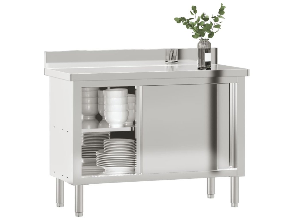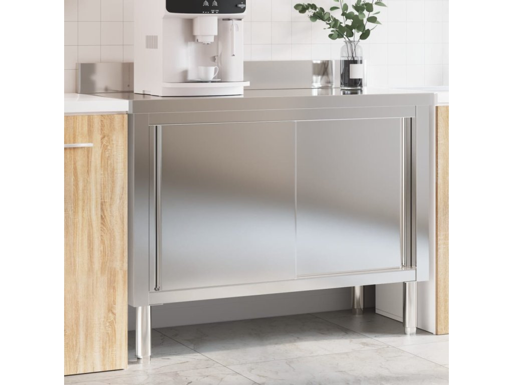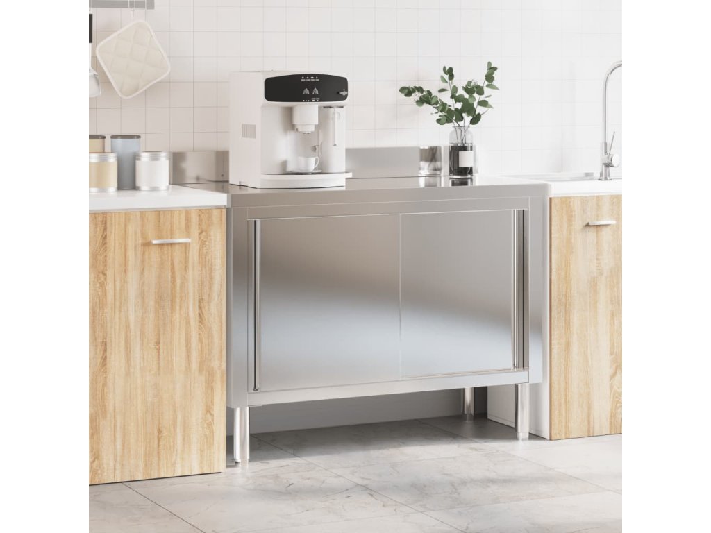 vidaXL Kuchynský pracovný stôl s posuvnými dvierkami nerezová oceľ