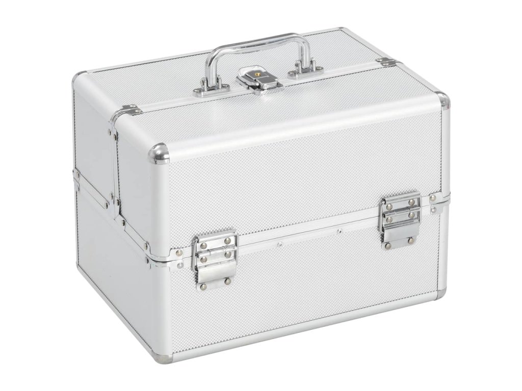 vidaXL Kufrík na make-up strieborný 22x30x21 cm hliníkový