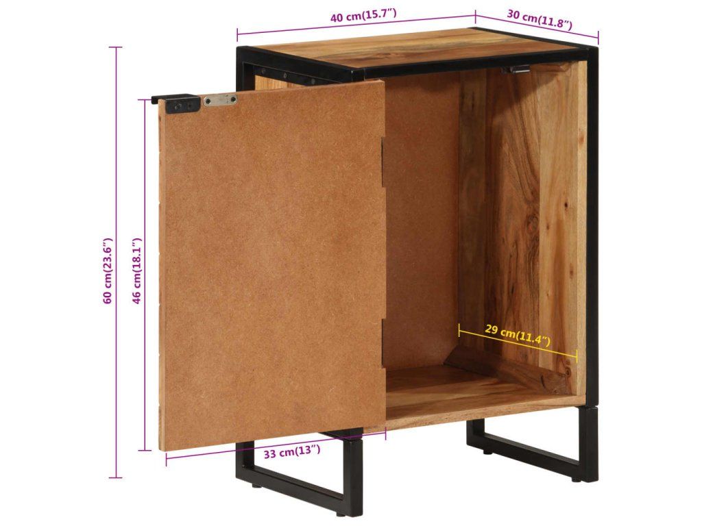 - Materiál: Akáciový masív s prírodnou povrchovou úpravou, železo s čiernou práškovou povrchovou úpravou