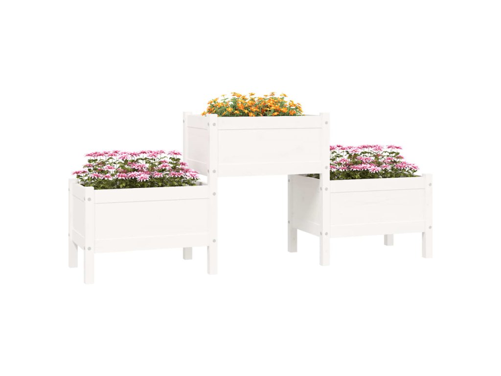 vidaXL Kvetináč biely 178,5x44x75 cm borovicový masív