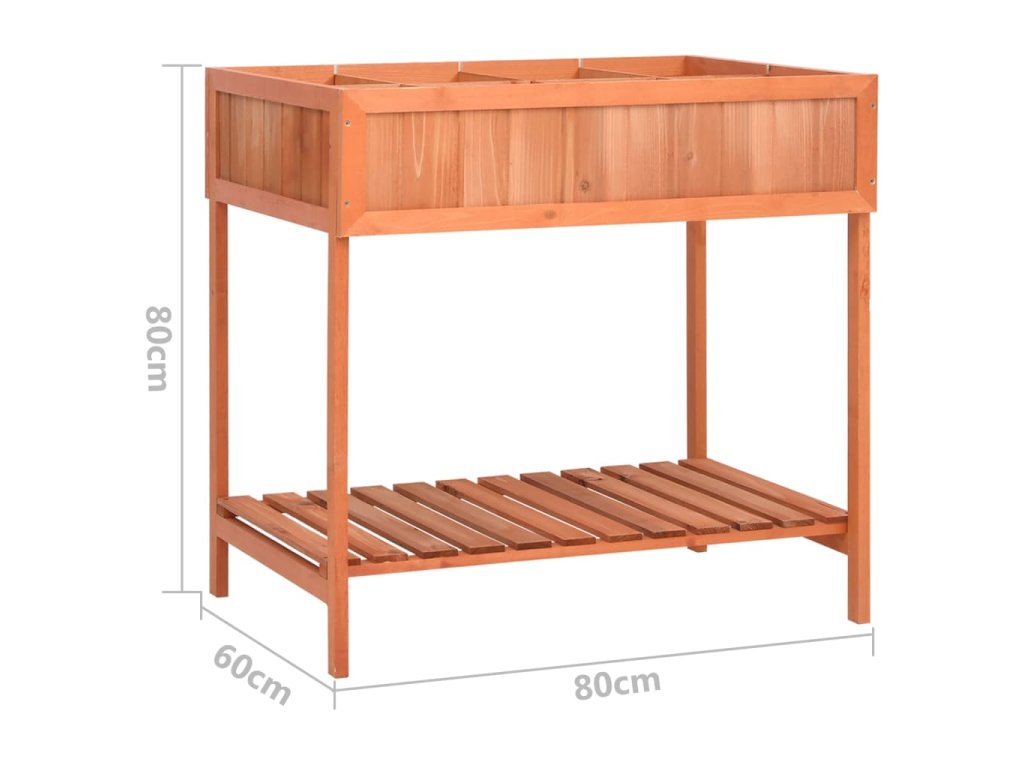Tento stojan na bylinky je vyrobený z masívneho jedľového dreva, vďaka čomu je stabilný, trvácny a vhodný na vonkajšie použitie. Kvetináč na bylinky má ideálnu výšku, ktorá umožňuje ľahký zber byliniek bez toho, aby ste sa museli príliš zhýbať alebo sa dostať do neprirodzených polôh tela. Výška kvetináča umožňuje ľahký a rýchly prístup k bylinkám pri ich rezaní a sadení. Vytvarovaná vložka a oddeľovač bylín sú súčasťou kvetináča a udržia bylinky oddelené. Taktiež zaistia, že pôda bude zdravá a dobre prevzdušnená, vďaka čomu budú bylinky skvelo rásť. Záhradný kvetináč ponúkne priestor na nasadenie až 8 samostatných typov byliniek, ktoré budú môcť rásť oddelene. Kvetináč má na spodnej časti policu, ktorá je ideálna na uloženie záhradného príslušenstva, ako je kanvica, štítky, nožnice a rôzne iné náradie.