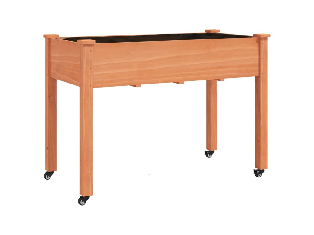 vidaXL Kvetináč s kolieskami a vložkou hnedý 118x59x80cm jedľový masív