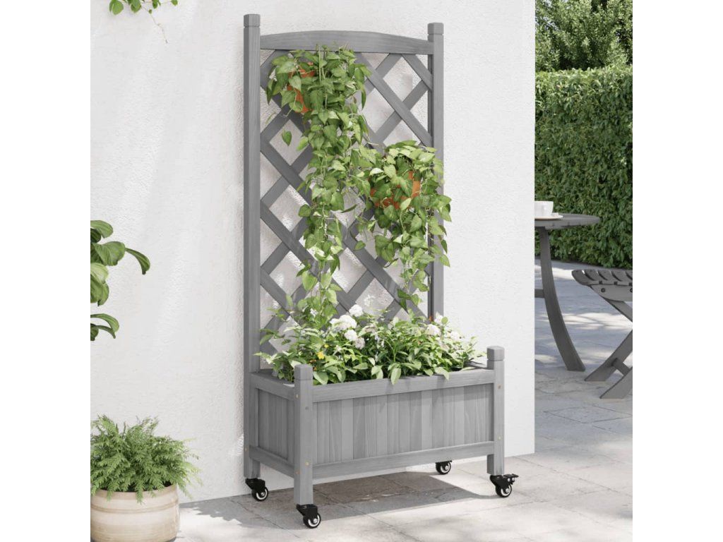 vidaXL Kvetináč s mriežkou a kolieskami sivý masívna jedľa