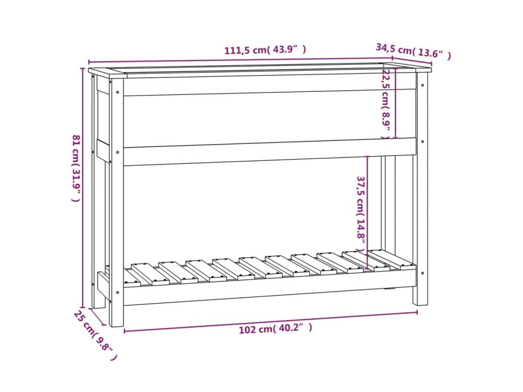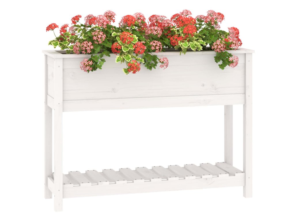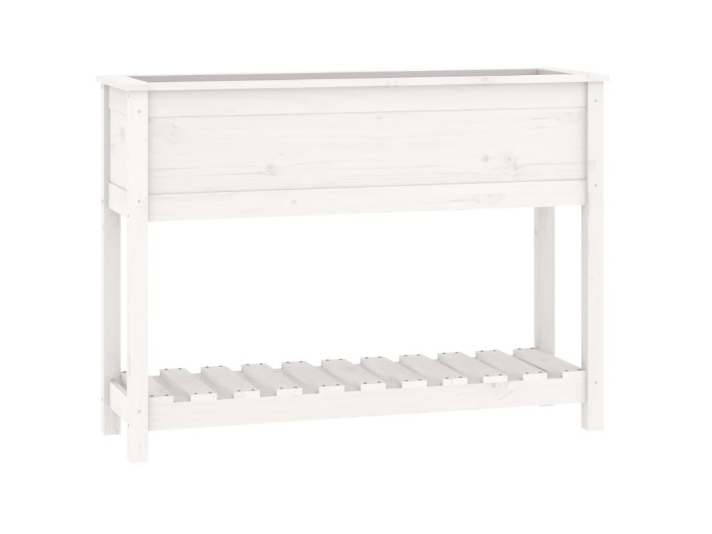 vidaXL Kvetináč s policou biely 111,5x34,5x81 cm masívna borovica