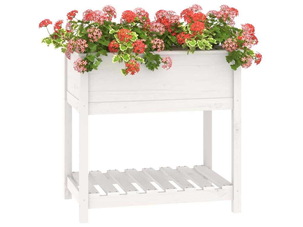 vidaXL Kvetináč s policou biely 82,5x54x81 cm masívna borovica