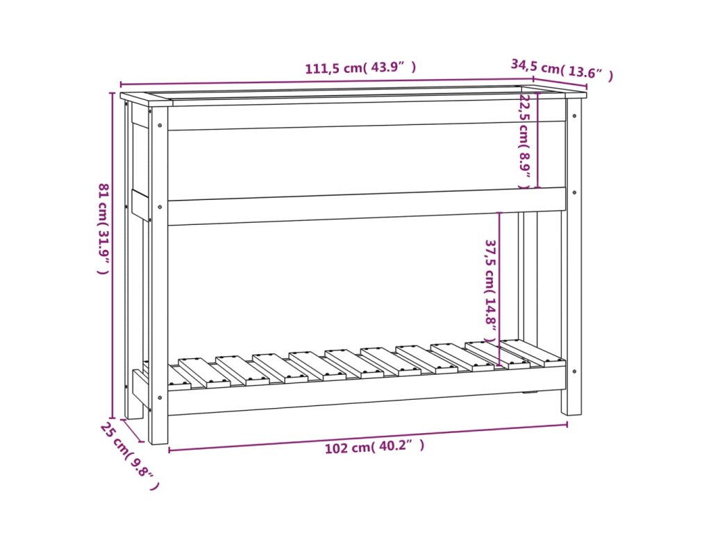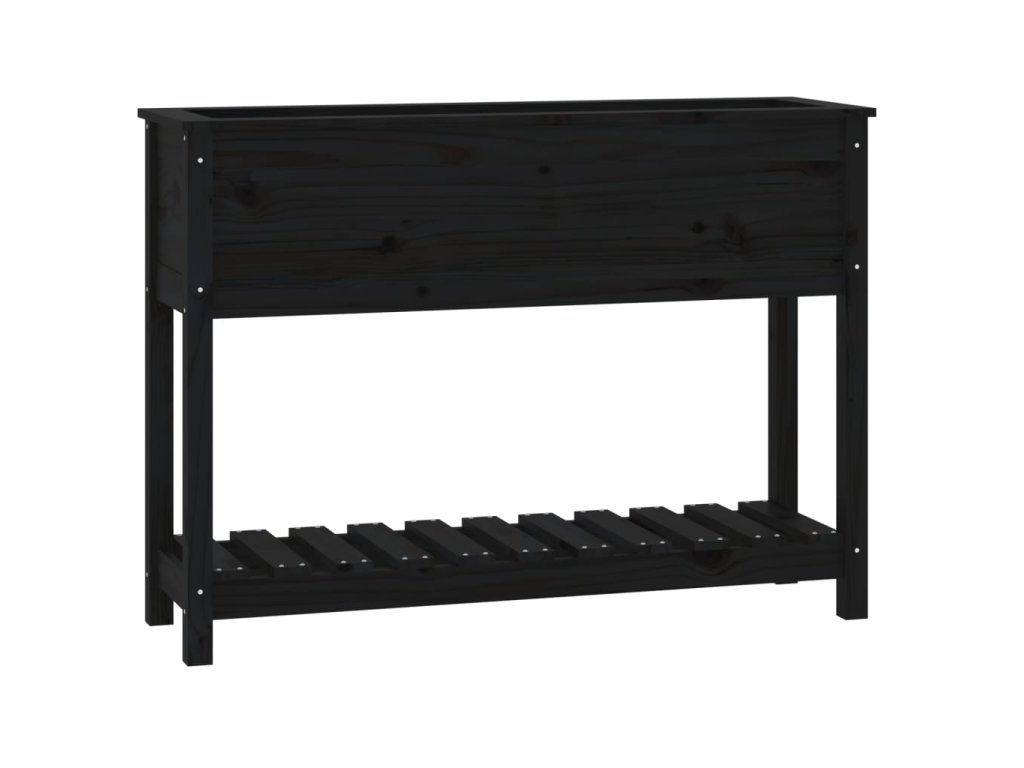 vidaXL Kvetináč s policou čierny 111,5x34,5x81 cm masívna borovica