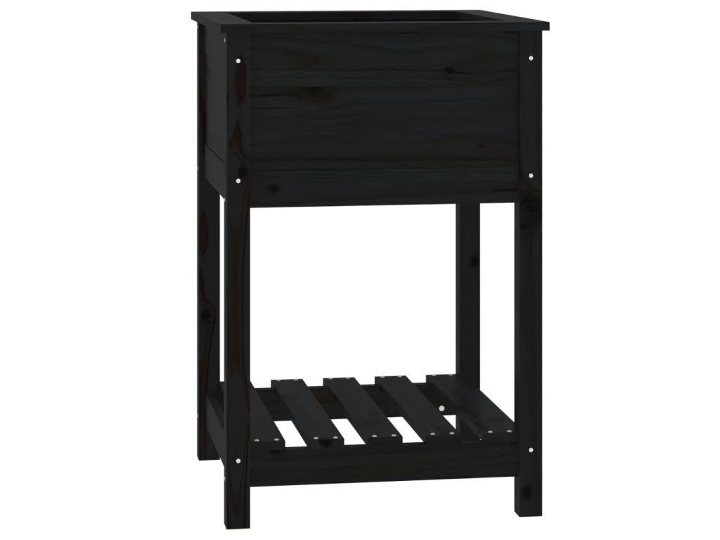 vidaXL Kvetináč s policou čierny 54x54x81 cm masívna borovica
