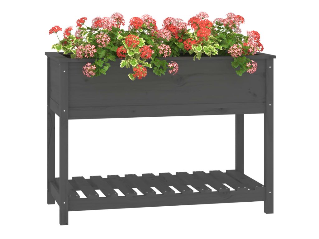 vidaXL Kvetináč s policou sivý 111,5x54x81 cm masívna borovica