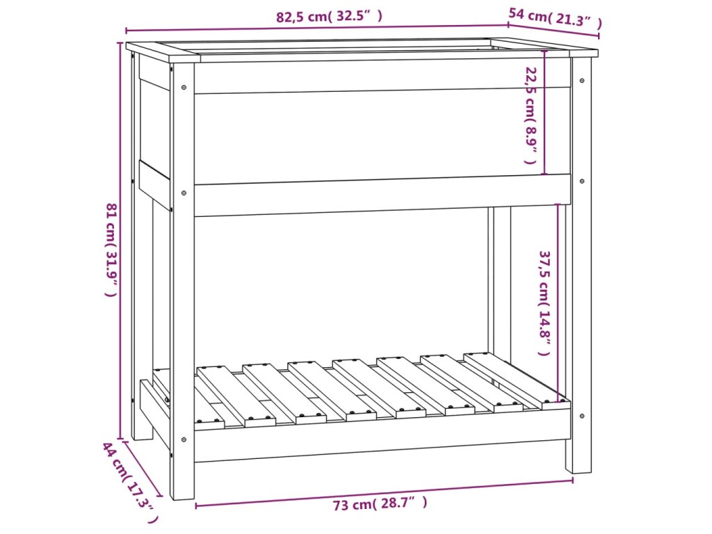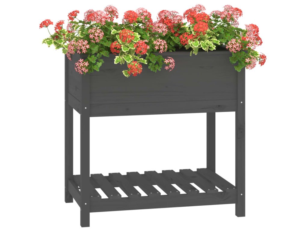 vidaXL Kvetináč s policou sivý 82,5x54x81 cm masívna borovica