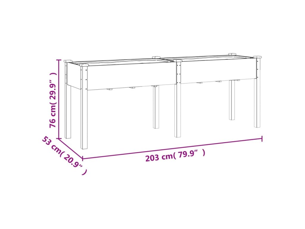 vidaXL Kvetináč s vložkou sivý 203x53x76 cm jedľový masív