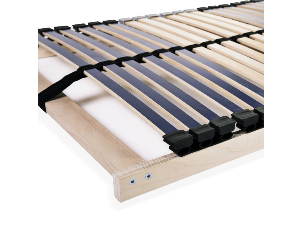 Lamelový rošt, ktorý pozostáva z rámu z bukového masívu a brezových lamiel, je pevný a odolný. 7 komfortných zón poskytuje vášmu telu optimálnu oporu. Oba konce lamiel sú upevnené v puzdrách z SBS gumy pre lepšiu stabilitu celej konštrukcie. Vďaka 6 nastaviteľným dvojitým lamelám v stredovej zóne si môžete podľa potreby prispôsobiť tvrdosť roštu. Montáž je jednoduchá.