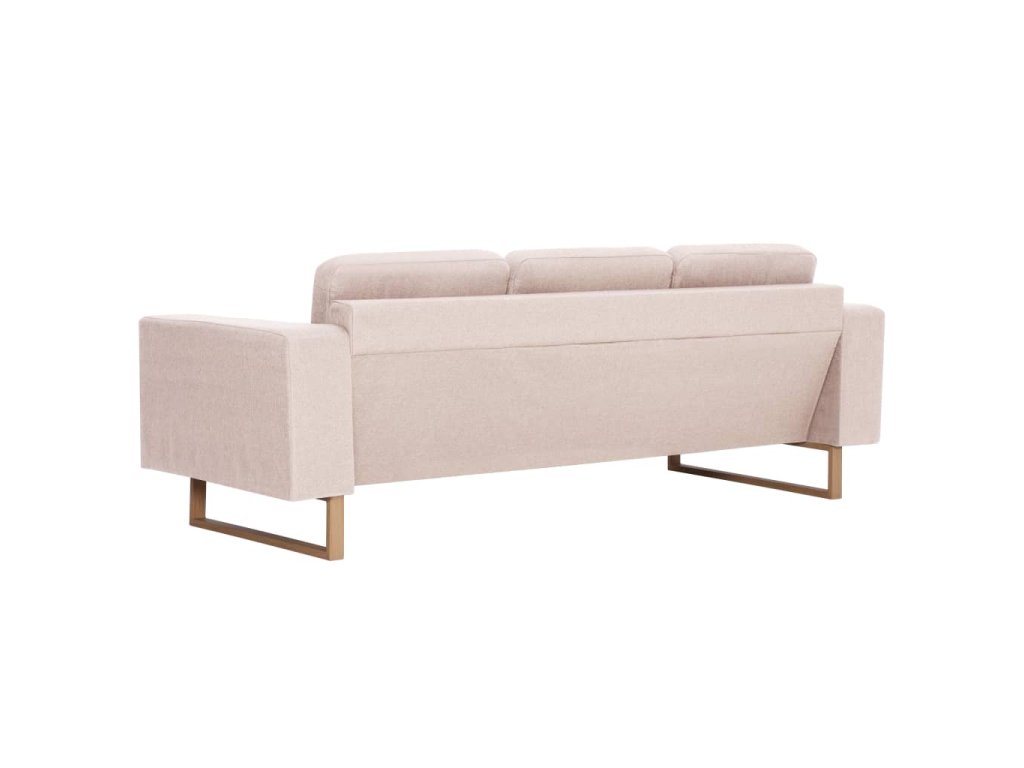 Pohovka poskytuje množstvo priestoru na sedenie a husto čalúnené vankúše zaručujú optimálny komfort. Je čalúnená jemnou látkou, ktorá je veľmi odolná. Poťahy vankúšov sa dajú ľahko očistiť, pretože ich môžete jednoducho zvliecť a oprať v práčke. Pohovka má navyše pevnú konštrukciu, keďže má silný drevený rám a železné nožičky.