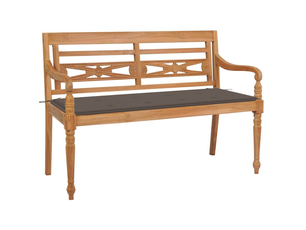 vidaXL Lavička Batavia so sivohnedou podložkou 120 cm tíkový masív