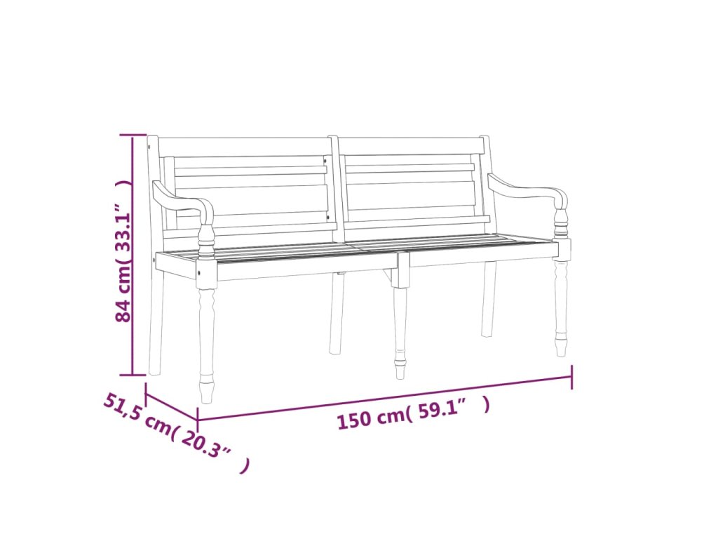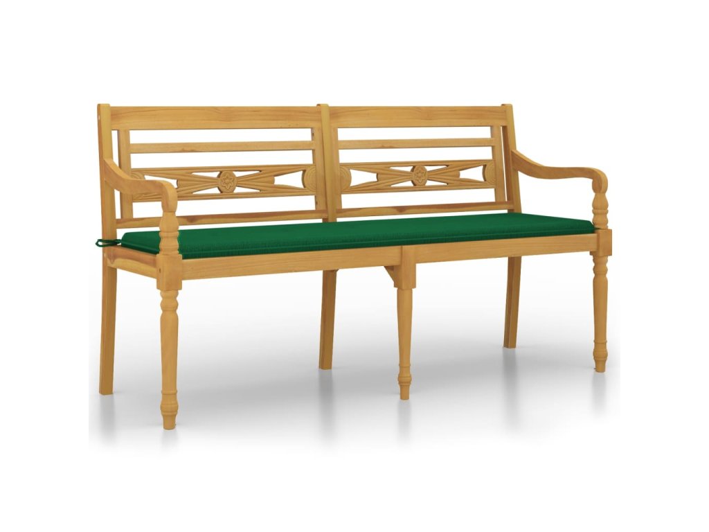 vidaXL Lavička Batavia so zeleným vankúšom 150 cm tíkový masív