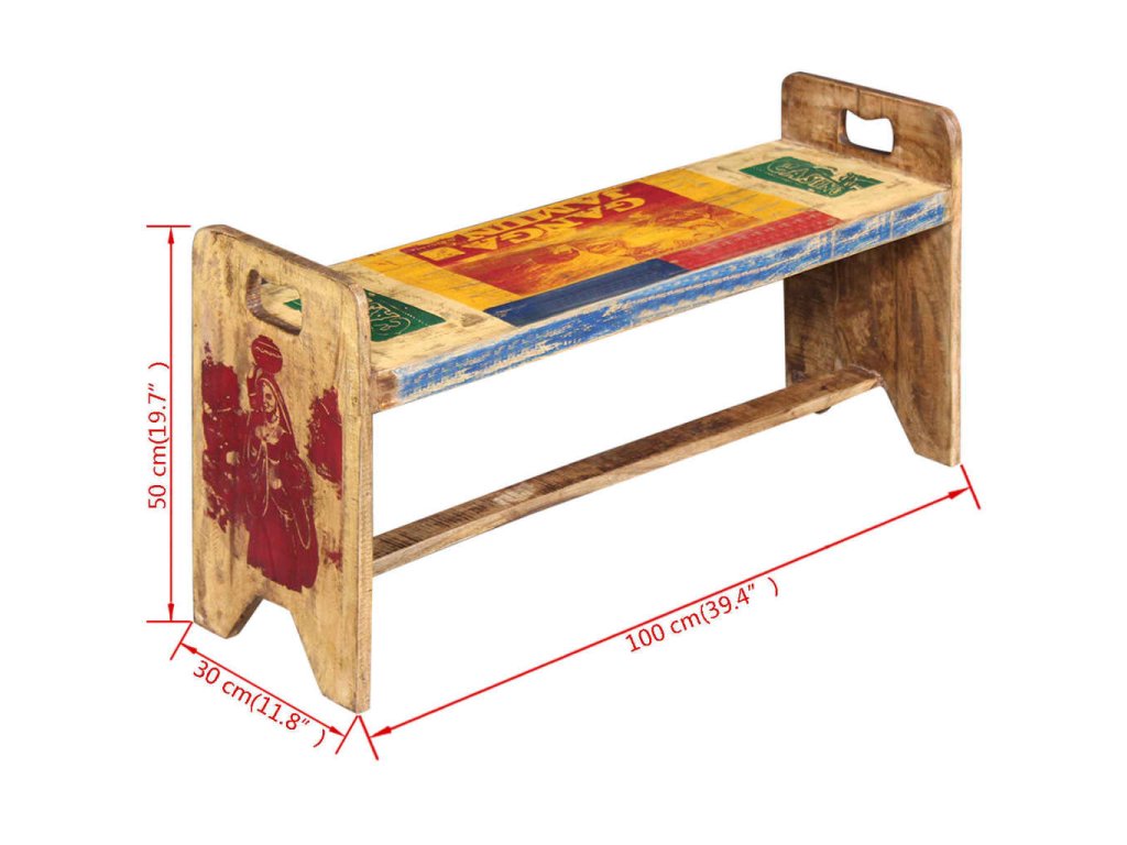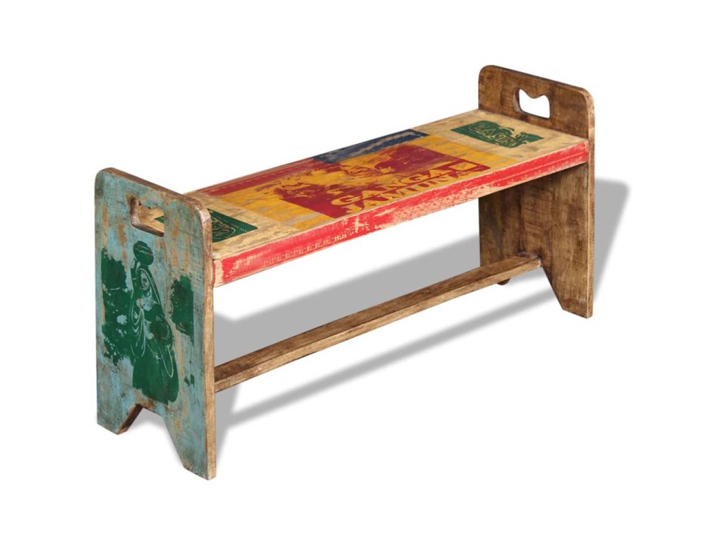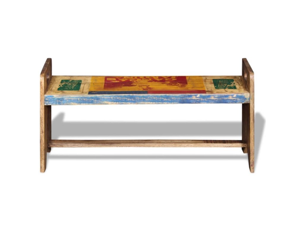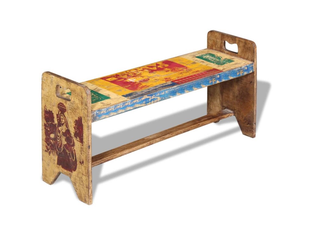 Táto drevená lavička so starožitným vzhľadom predstavuje jedinečný doplnok do domácnosti. Konštrukcia z dreveného masívu lavičke prináša stabilitu a pevnosť, a tak je vhodná na každodenné používanie. Lavička s ozdobným farebným vzorom za okamih rozžiari celý interiér.