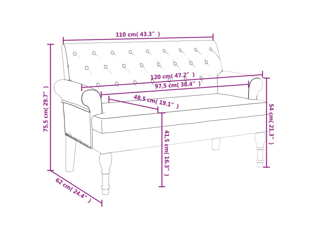 - Elegantný dizajn: Lavicová stolička má gombíkové prešívanie, zrolované podrúčky a nohy v starožitnom štýle, ktoré dodajú vášmu domovu nádych elegancie.