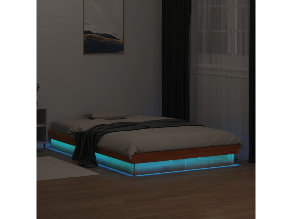 vidaXL LED posteľný rám voskovo hnedý 135x190 cm masívna borovica